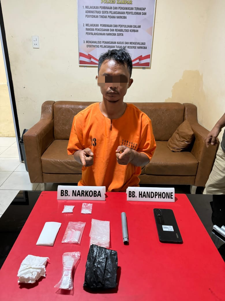 Hallokampar.com -SU (46) warga Dusun Muaro Siabu, Desa Siabu, Kecamatan Salo ditangkap Satresnarkoba Polres Kampar, darinya berhasil diamankan barang bukti 2 paket sabu-sabu dengan berat 6.84 gram, Rabu (18/9/2024).
