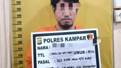 Pelaku ditangkap di Jalan Dusun III Nusa Jaya, Desa Pulau Jambu, Kecamatan Kampar. “Usia ditangkap pelaku langsung diseret ke rumahnya dan di sana ditemukan 8 paket sabu-sabu,”terang Kapolres Kampar AKBP Ronald Sumaja melalui Kasat Narkoba AKP Era Maifo.