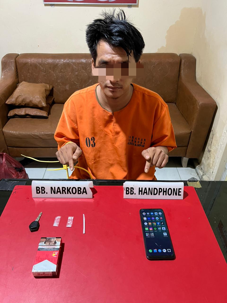 Hallokampar.com- Satresnarkoba Polres Kampar berhasil mengamankan seorang pria berinisial JO (29) warga Desa Petapahan Jaya, Kecamatan Tapung. Dimana saat itu ia sedang duduk diatas sepeda motornya.