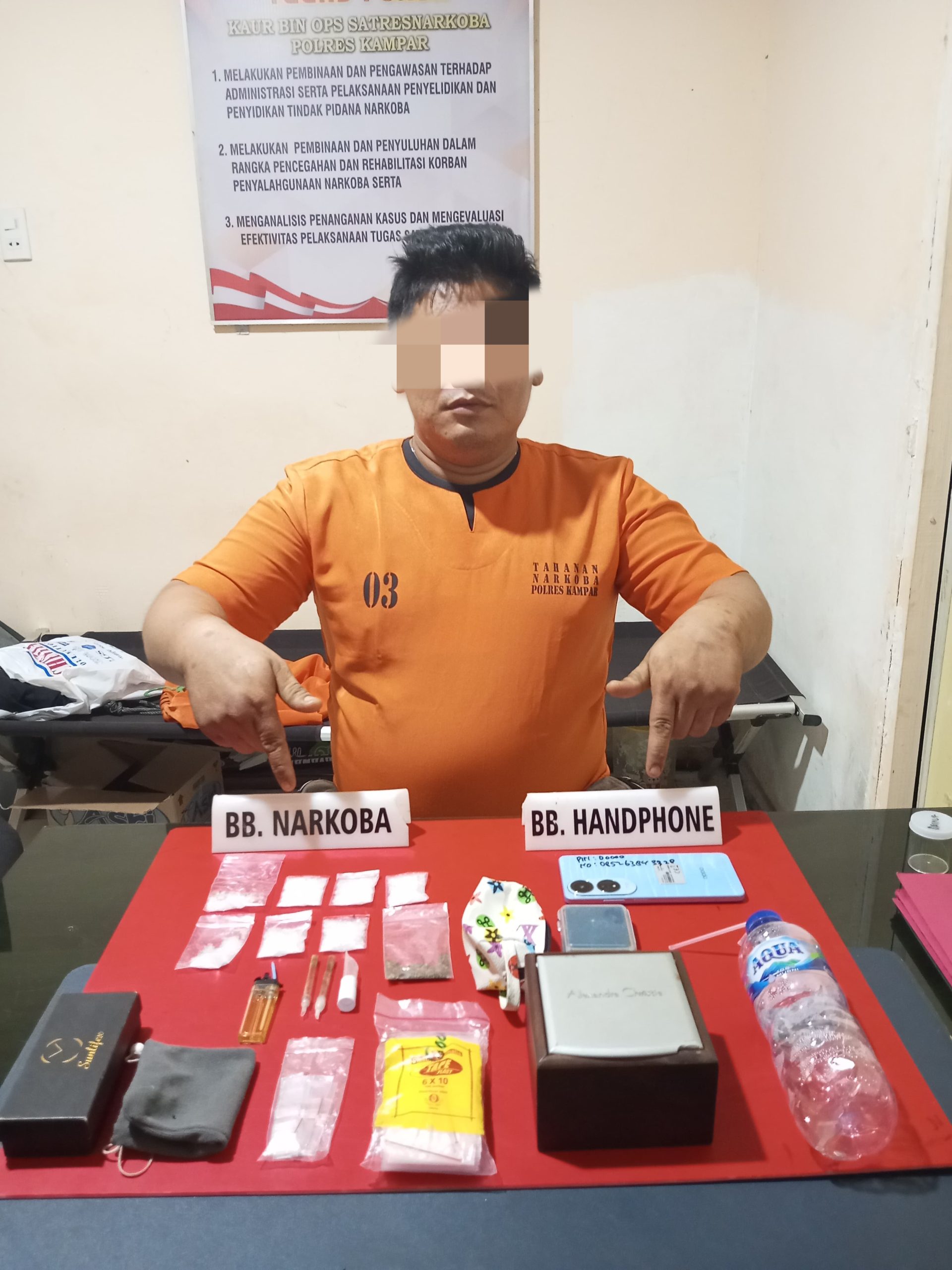 Pelaku berinisial DA (36) warga Desa Sai Kandis, Kabupaten Rokan Hulu dari penangkapan ini berhasil diamankan barang bukti jenis sabu-sabu 31,52 Gram dan daun ganja kering 1,20 gram.