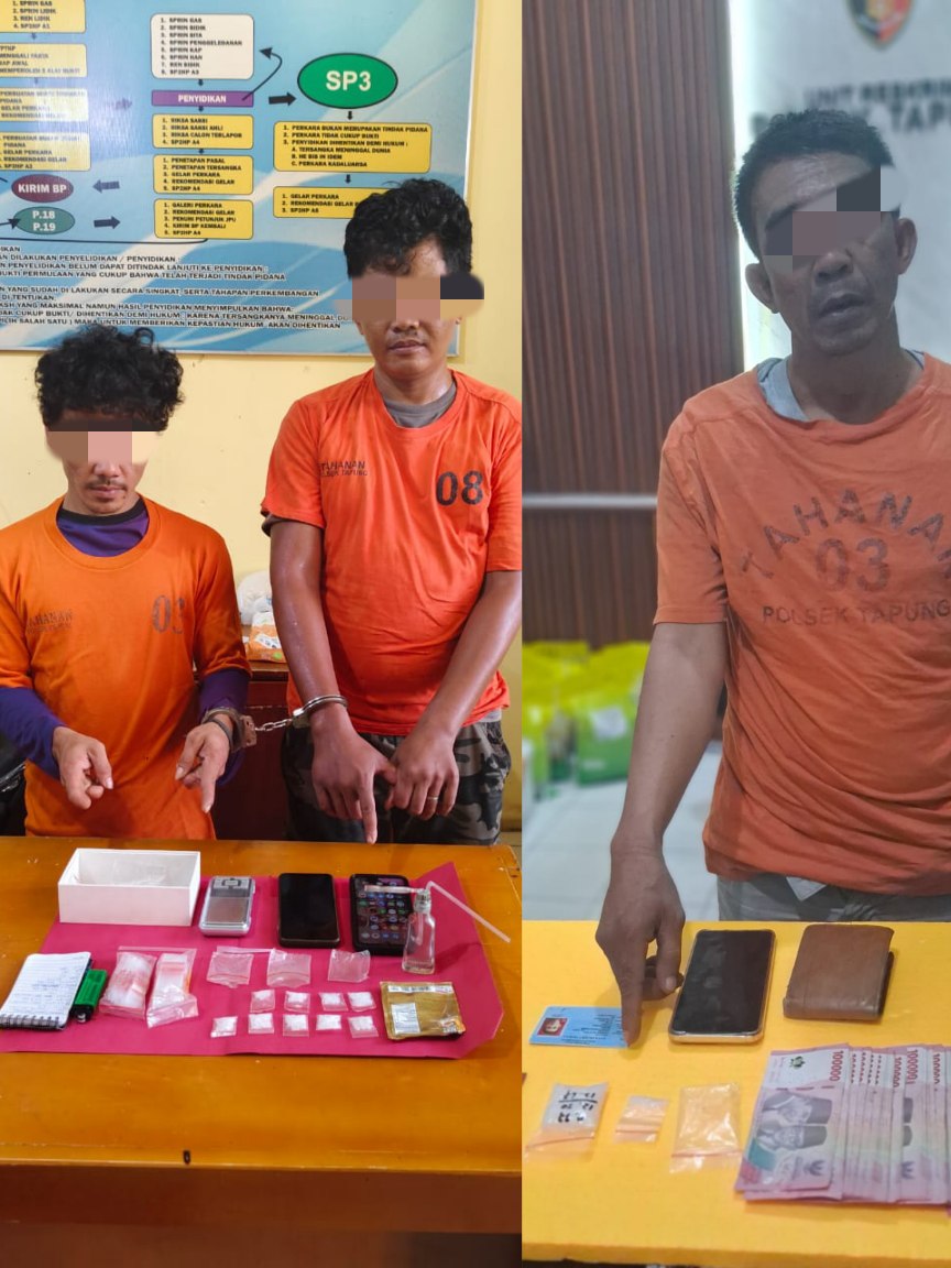 Hallokampar.com,- Unit Reskrim Polsek Tapung berhasil tangkap tiga pelaku Narkoba jenis sabu-sabu di dua TKP berbeda saat operasi antik di wilayah hukumnya.