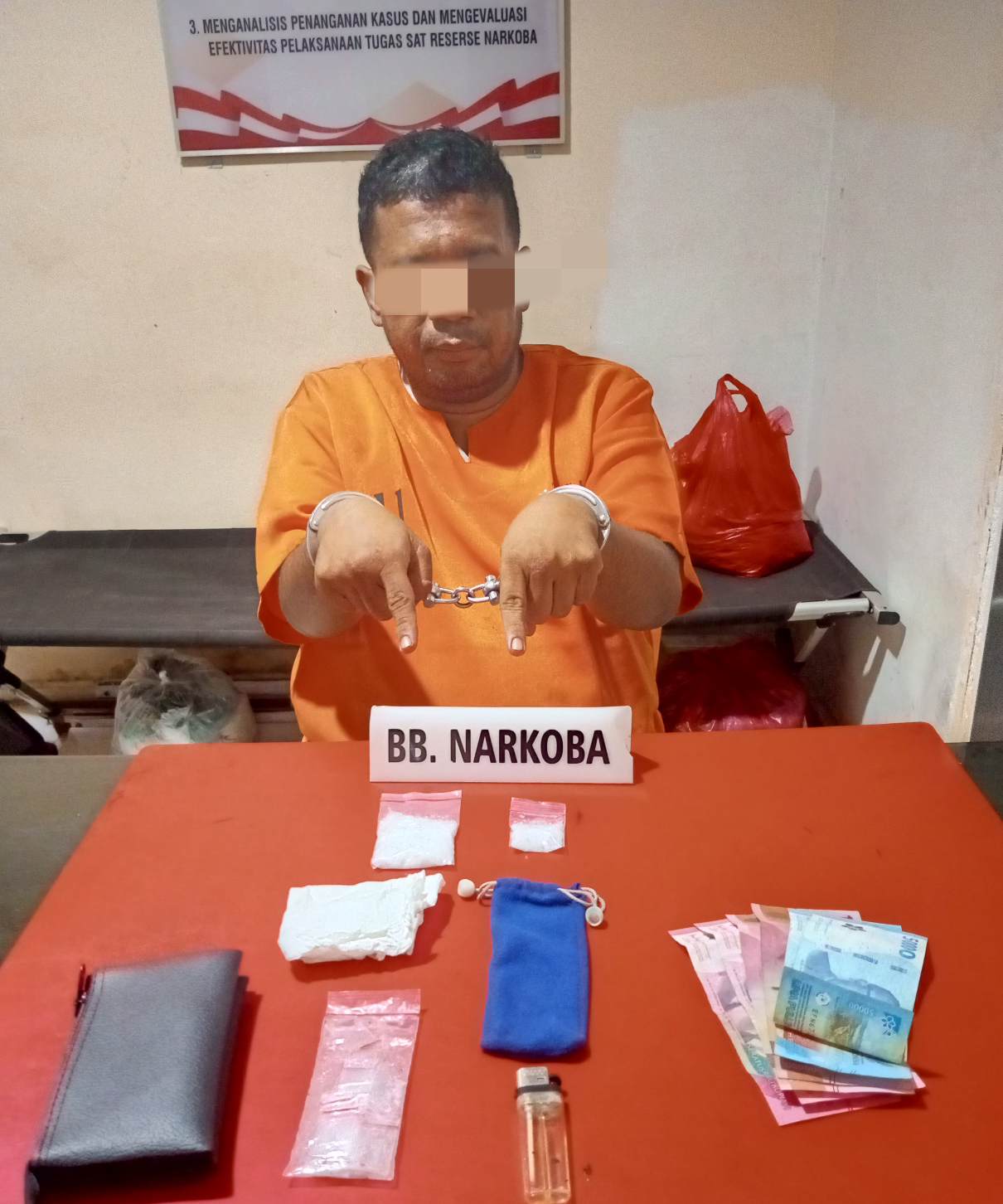 Penangkapan pelaku ini cukup sulit dan licin, “pasalnya pelaku sempat melarikan diri dan membuang sebuah dompet warna hitam yang berisikan plastik bal dan mancis,”ujar Kasat.