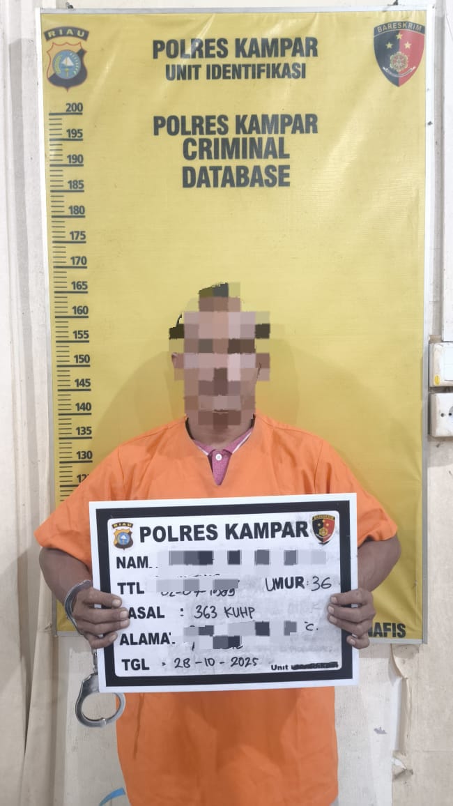 Hallokampar.com,- Tim Resmob Sat Reskrim Polres Kampar berhasil mengungkap kasus pencurian dengan pemberatan (curanmor) sepeda motor yang terjadi di Pasar Air Tiris, Kecamatan Kampar, Kabupaten Kampar. Pelaku, MR (36), berhasil diamankan di Desa Muara Uwai, Kecamatan Bangkinang, Selasa (28/10/ 2025).