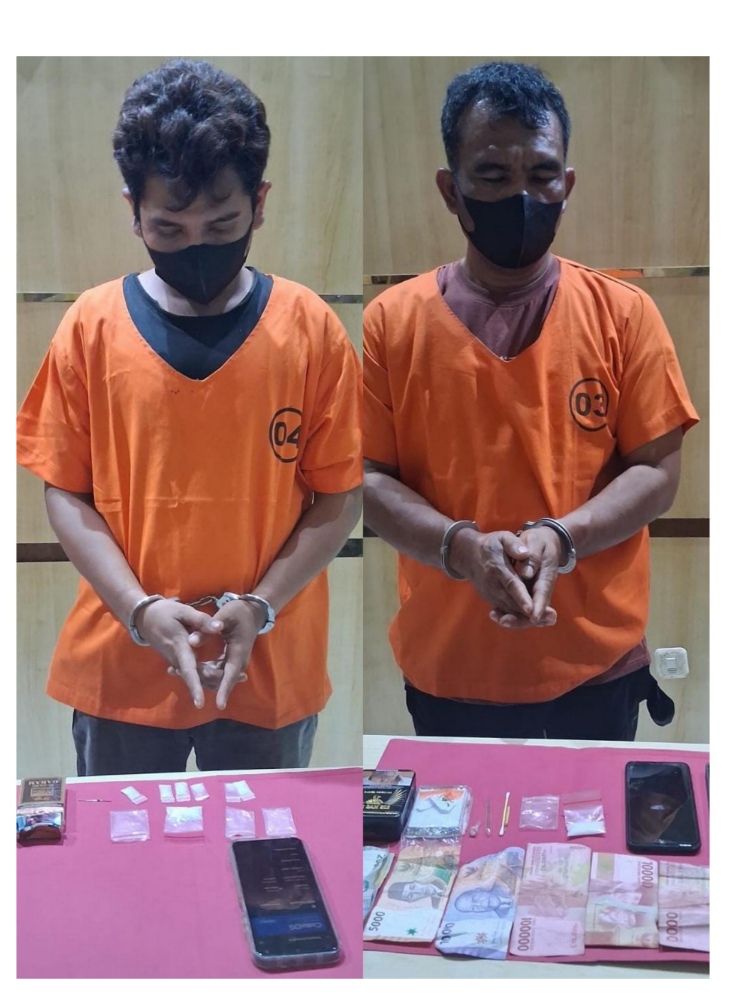 “Tim langsung bergerak ke lokasi yang merupakan perkebunan kelapa sawit milik warga, tepatnya dijalan poros, Pada saat itu Petugas melihat 2 (dua) orang tersebut sedang melakukan transaksi jual beli narkotika,” terang Kapolsek.
