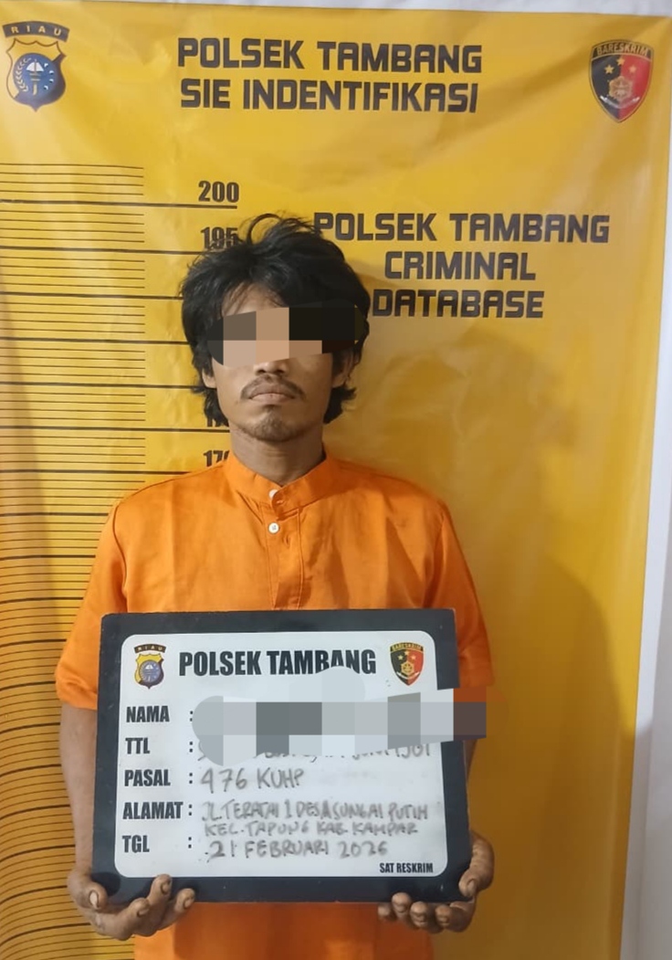 HALLOKAMPAR,- Jajaran Polsek Tambang tangkap seorang pelaku pencurian buah kelapa sawit di Areal Blok 3 J Kebun Sawit Heri Santoso yang berlokasi di RT 001 RW 001 Desa Rimba Panjang Kecamatan Tambang Kabupaten Kampar, Jum’at (20/2/2026) sekira pukul 15.25 WIB.